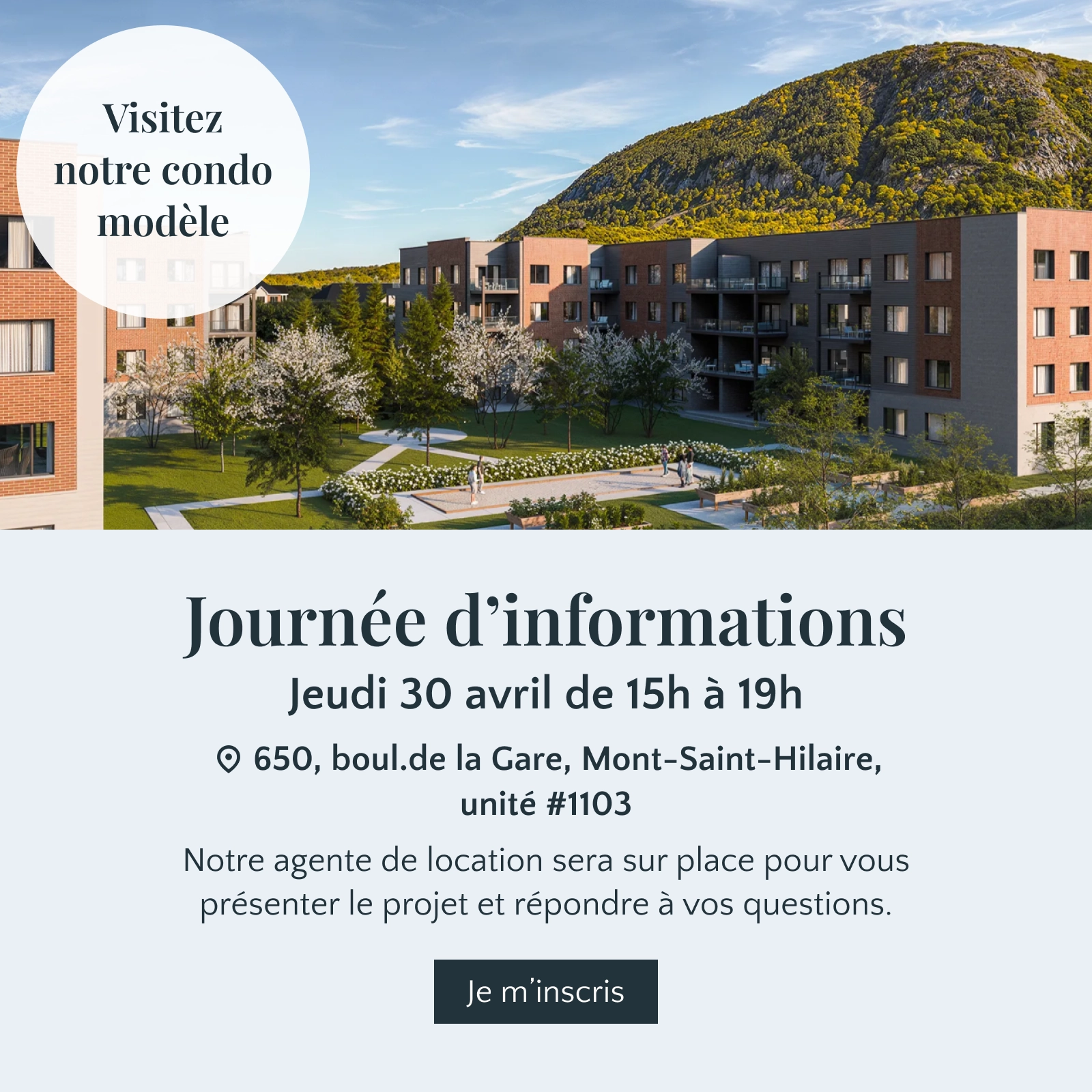 Condos locatifs neufs à Mont‑Saint‑Hilaire dans le Village de la Gare
